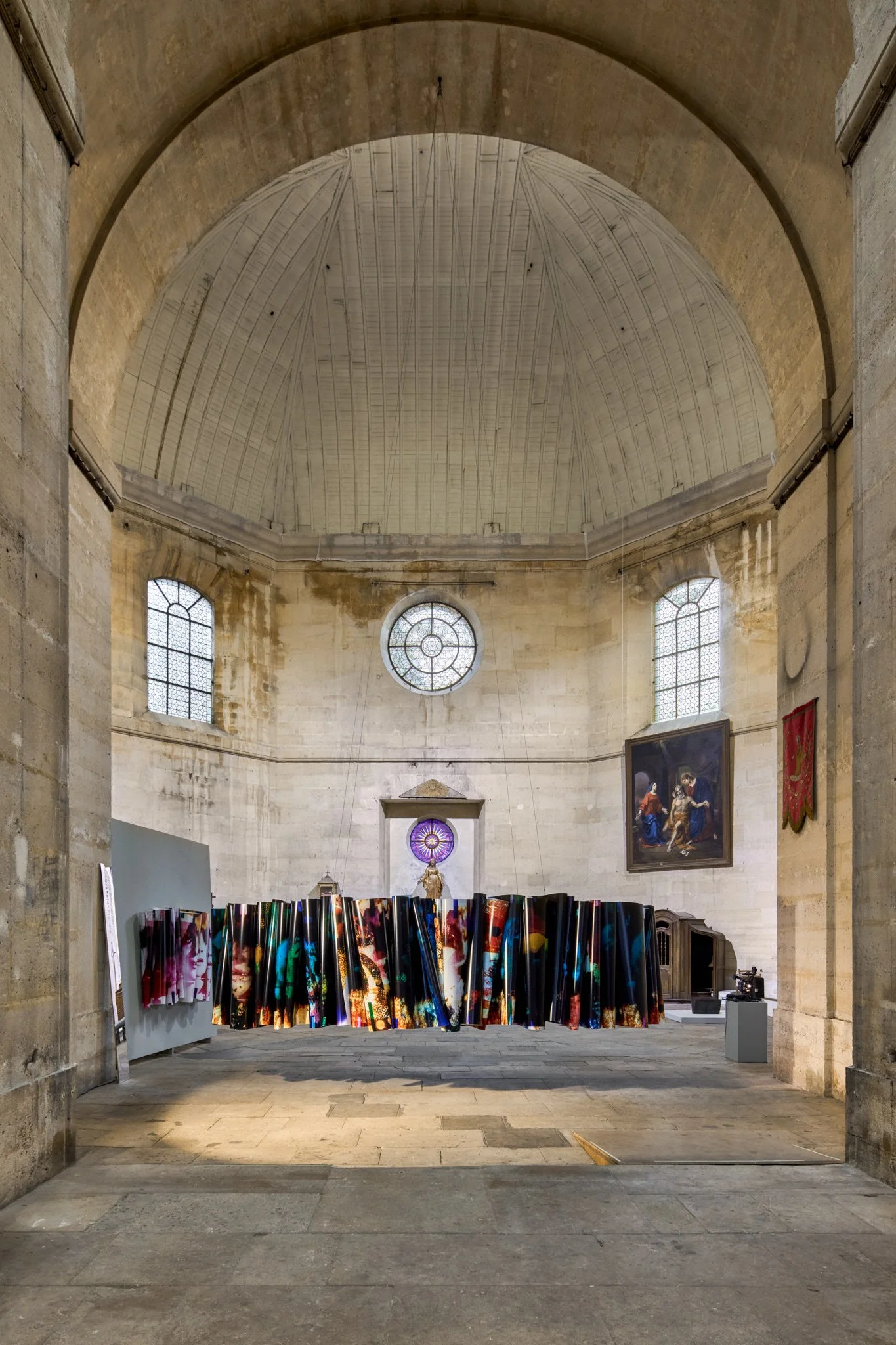 Carrie Schneider, bloodline (alpha), 2025, single unique chromogenic photograph made in camera, installed: 92 x 148 x 54 inches (233.7 x 375.9 x 137.2 cm), paper full length: 50 inches x 177 feet (127 x 5395 cm)