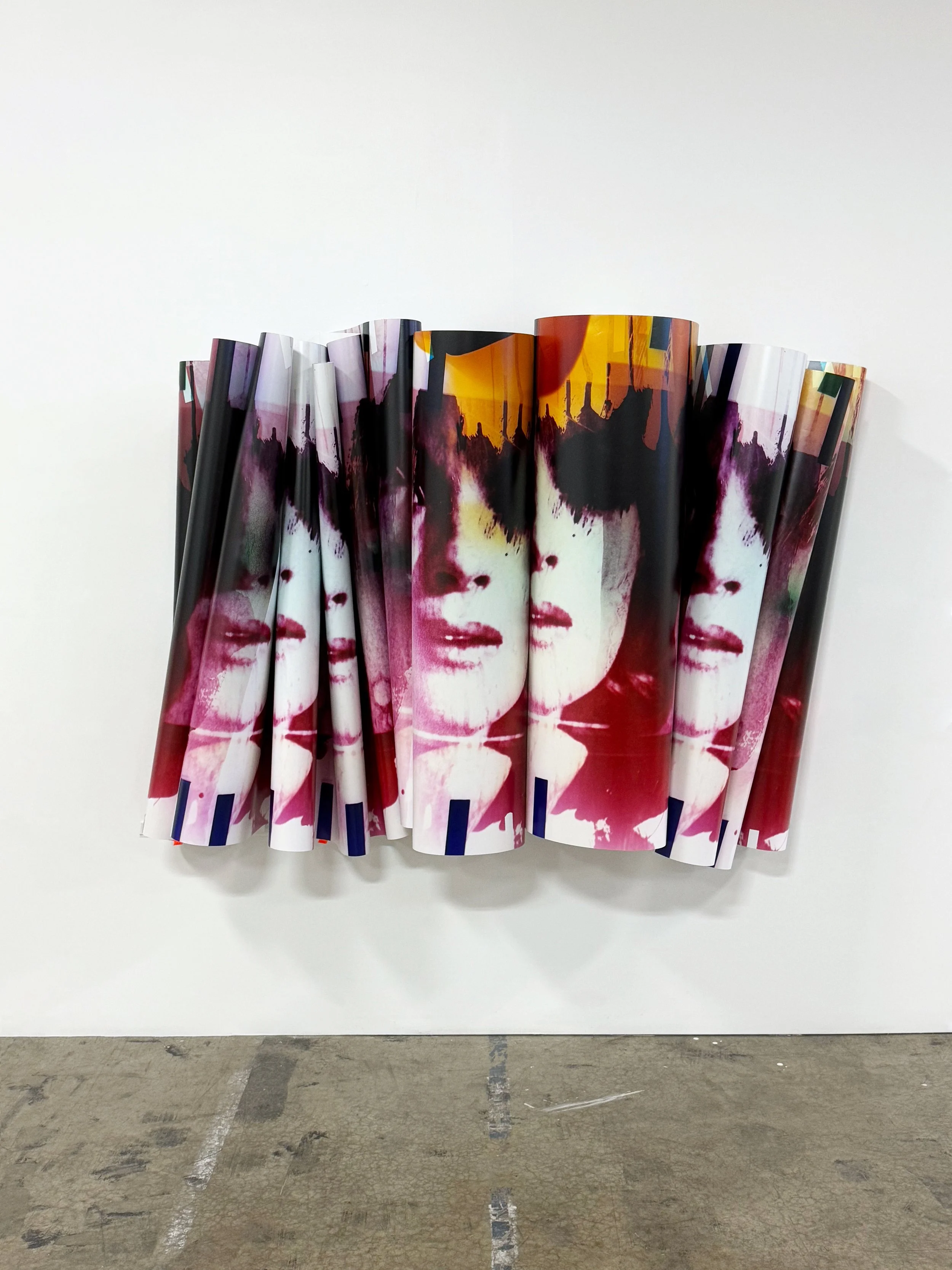 Carrie Schneider, Eve I (bloodline), 2025, unique chromogenic photograph made in camera, installed: 60 x 66 x 19 inches (152.4 x 167.6 x 48.3 cm), paper full length: 33.3 feet (1016 cm)
